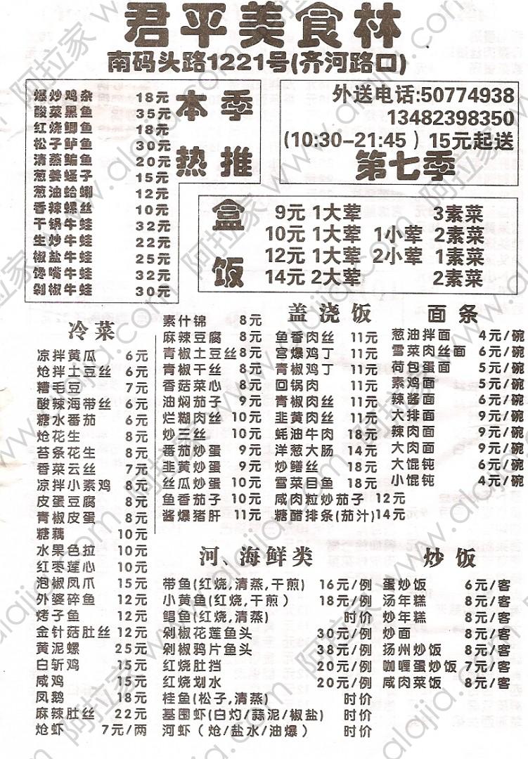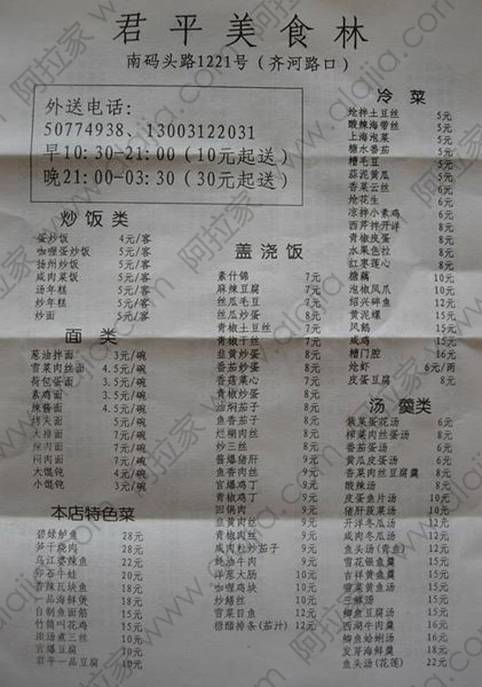 君平美食林的外卖单 By anlinna2012@2012-03-03 12:19:35