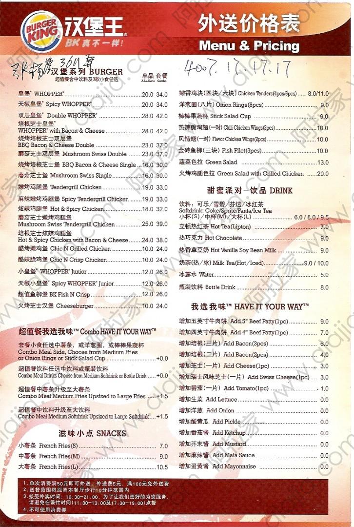 汉堡王的外卖单 By liufang@2012-07-27 14:31:11